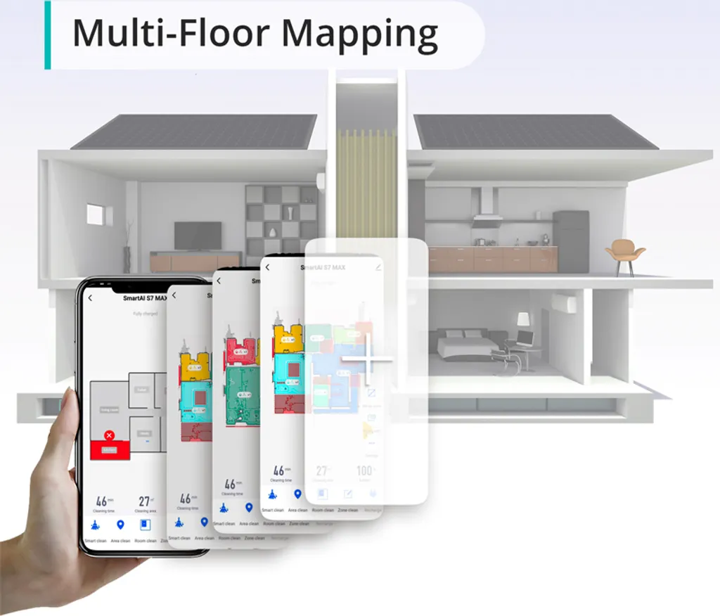 Die mobile App kann mehrere Karten speichern, um Häuser mit mehr als einer Etage bequem und schnell zu reinigen. Nachdem die Karte gespeichert wurde, wird die Effizienz des Robotervakuums erheblich verbessert. Es kann ungehindert im Haus reinigen.