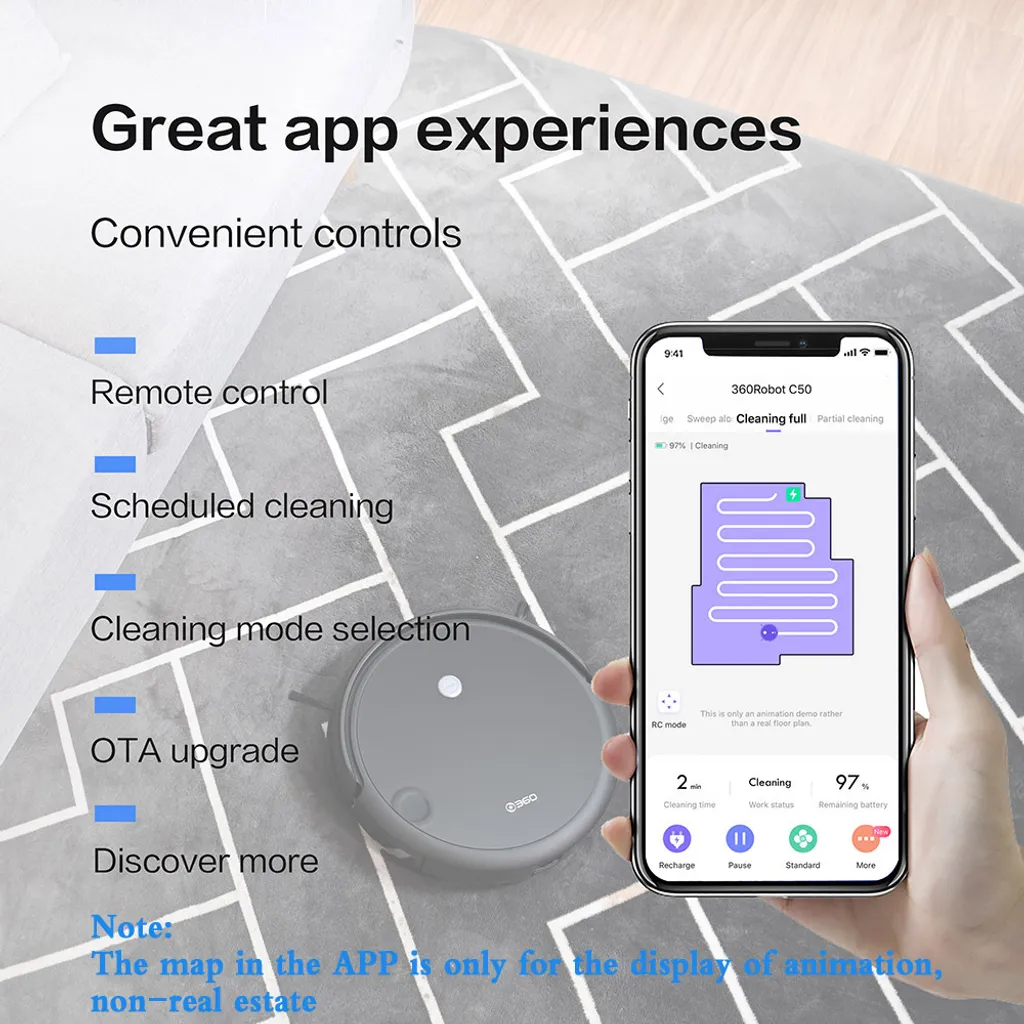 2600mAh Batterie, 120min lange Akkulaufzeit, kann 150㎡ zu einer Zeit reinigen.