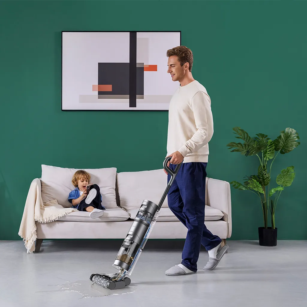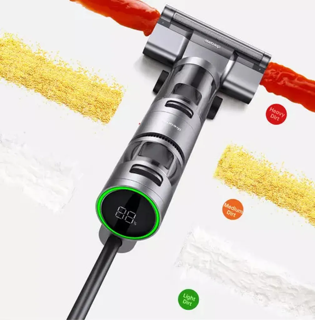 Die kabellose Scheuersaugmaschine von Dreame ist mit einem Doppelmotor und einem Wasserkreislaufsystem für integrierte Saug- und Wischreinigung ausgestattet. Mit einem Nass- und Trockenmotor löst eine Maschine alle Arten von Flecken im Haushalt. Ausgestattet mit sechs 4000-mAh-Batterien und einem intelligenten Inverter-Energiesparsystem, reinigt er 35 Minuten lang ununterbrochen. Der innovative Einsatz eines zahnförmigen Abstreifers verstärkt den Selbstreinigungseffekt der Walzenbürste und entlastet so Ihre Hände. Die 8-fache Sensortechnologie, der Sprachassistent und der große Farbbildschirm sorgen für ein intelligenteres Reinigungserlebnis.