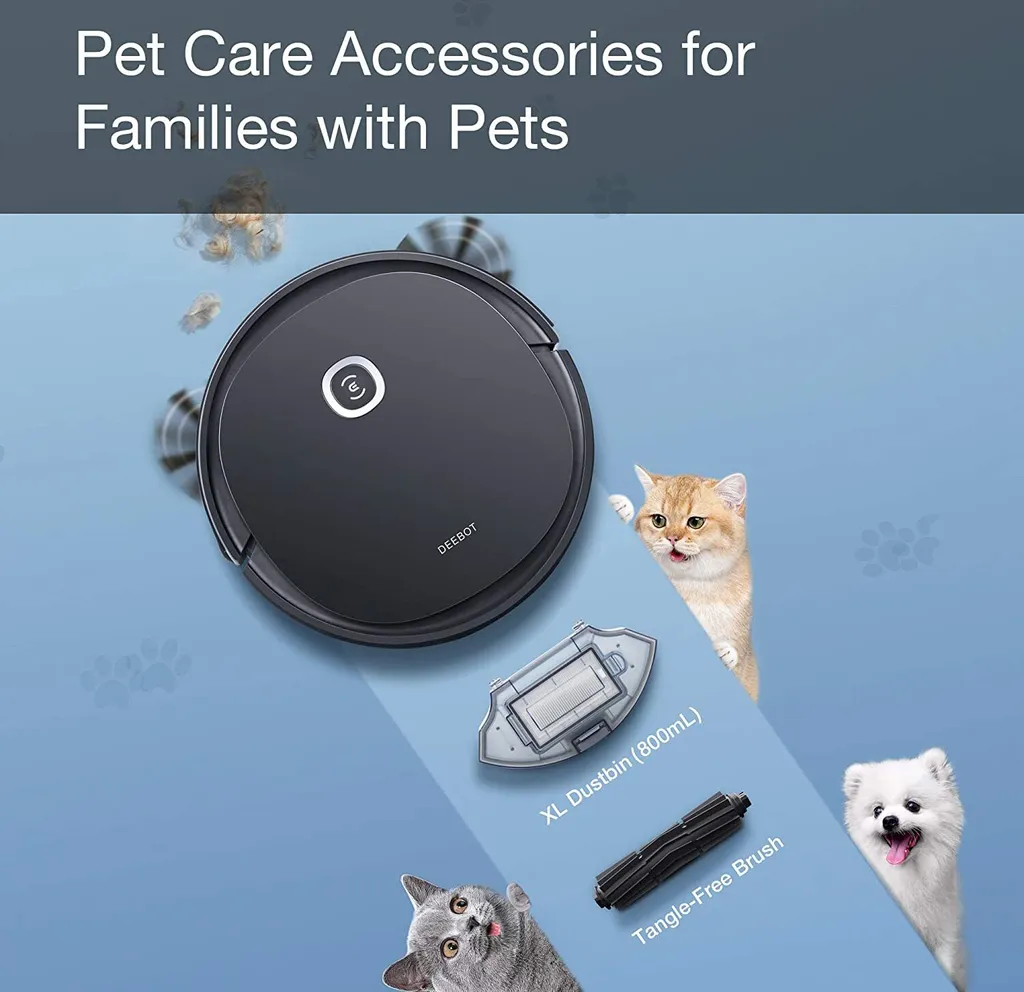 Der DEEBOT U2 PRO enthält ein extra Haustier-Set mit austauschbarem, besonders großem Staubbehälter (800 ml) und eine verwicklungsfreie Bürste. Speziell für Haustierbesitzer entwickelt, die mit großen Mengen an Tierhaaren zu kämpfen haben.