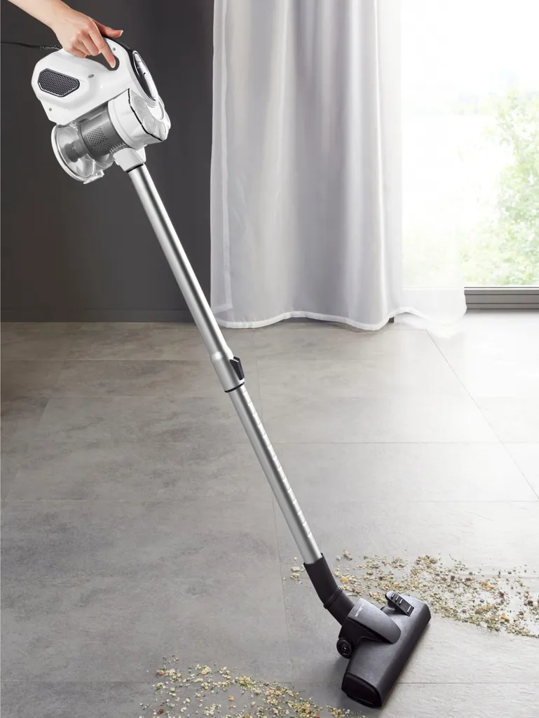 Die Kabellänge beträgt 5 Meter, was bedeutet, dass Sie volle 10 Meter von der Steckdose aus erreichen können! Sie können ihn ganz einfach in einen flexiblen Handstaubsauger verwandeln, indem Sie den langen Schaft abnehmen und so beispielsweise im Auto oder in anderen beengten Räumen mit der mitgelieferten Spezialdüse saugen können.