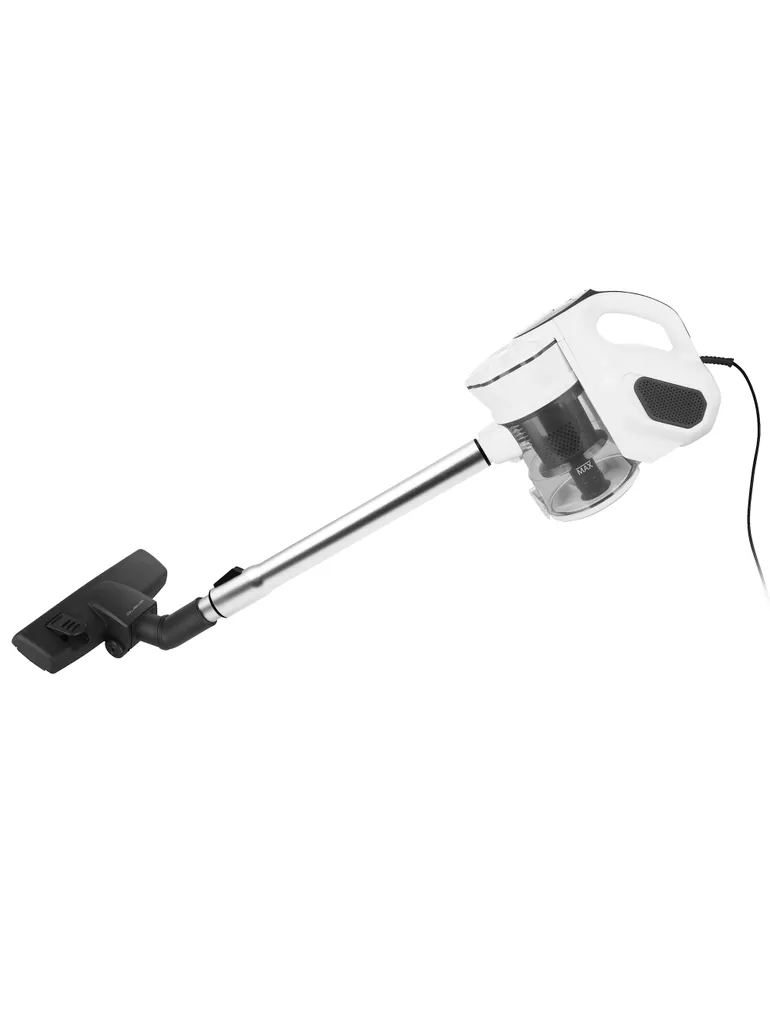 Beutelloser Handstaubsauger mit Zyklon-Technologie von Emerio. Er verfügt über eine so starke Saugkraft wie mit einem 1000 Watt-Gerät. Die Kabellänge von 5 m ermöglicht einen Aktionsradius von bis zu 6 Meter. Mit Hepa-Filter und leicht zu entleerendem Staub-Auffangbehälter (Kapazität 0,5 Liter). Inkl. Metall-Saugrohr, umschaltbarer Bodendüse und Möbelpinsel mit Fugen-Düse. Leistung 600 Watt. Maße LxBXH ca.: 15,5 x 25 x 113 cm.