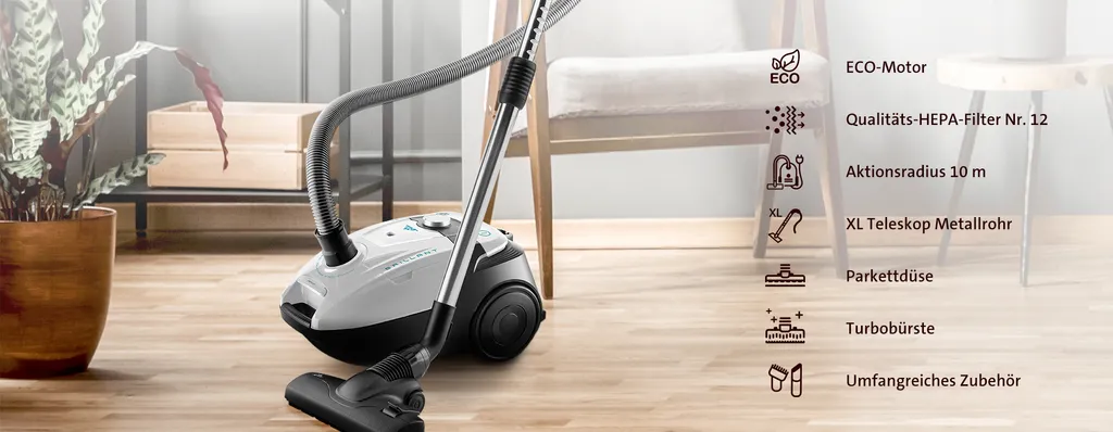Zusätzlich ist der Motor durch eine Sicherung gegen Überhitzung und damit Beschädigung geschützt. Ein weiterer Sicherheitsmechanismus verhindert dann das Starten ohne (korrekt) eingelegten Staubbeutel.