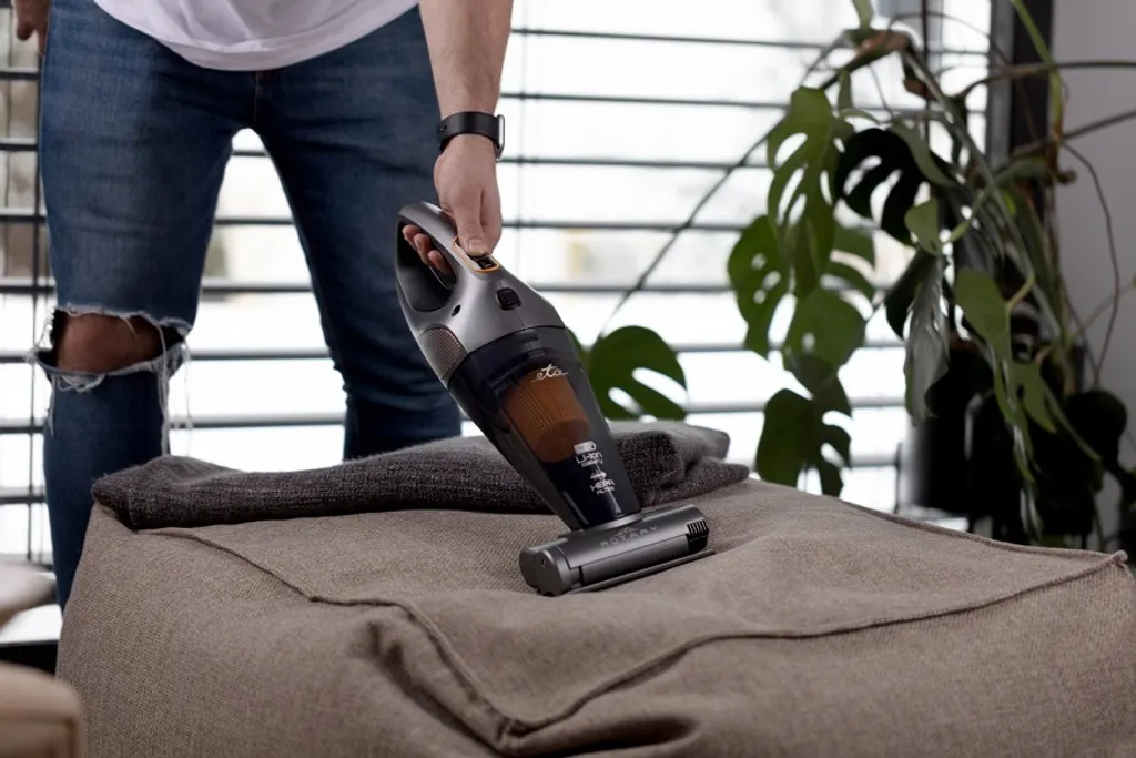 Dank seines geringen Gewichts, der geringen Abmessungen und des ergonomisch geformten Griffs ist dieser manuelle Helfer auch angenehm zu handhaben und Ihre Finger beschweren sich auch nicht – die EIN / AUS-Taste kann in der ausgewählten Position arretiert werden, sodass Sie sie während des gesamten Staubsaugvorgangs nicht krampfhaft drücken müssen.