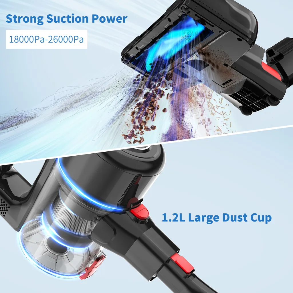 【Kurze Ladezeit & Lange Laufzeit】Dank der Schnellladetechnologie ist der Staubsauger in nur 4 Stunden vollständig aufgeladen, bei einer Laufzeit von bis zu 35 Minuten. mit 2 einstellbaren Gängen kann die maximale Saugleistung 26000 Pa erreichen. Herausnehmbarer Akku zum einfachen Aufladen und Austauschen des Akkus.