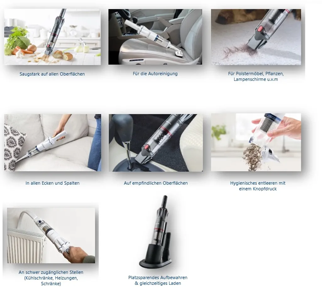 - Sauberkeit zum Wohlfühlen: Schnelle Reinigung auf allen Oberflächen und an schwer zugänglichen Stellen.