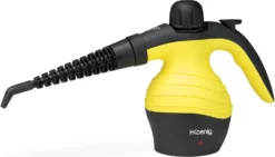 H.Koenig NV60 – Kompakter Dampfreiniger, 1000W, gelb. Mit dem NV60-Dampfreiniger von H.Koenig kann keine Oberfläche widerstehen. Dank des Betriebs mit Druckwasser reinigt, desinfiziert und entfettet es jede Ecke ohne Verwendung chemischer Produkte. Es hat eine Leistung von 1000 W und einen Dampfdruck von 4 bar, mit dem Sie alle Arten von Oberflächen reinigen können: Küchen, Badezimmer, Garagen, Fenster, Badewannen, Matratzen, Teppiche, Kleidung, Fahrräder und Autos. Dank seines starken Dampfstroms und seiner Temperatur von bis zu 135 ° C können Sie vollständig desinfizieren. Es dauert nur 3 Minuten, um das Wasser zu erhitzen und einsatzbereit zu sein. Eigenschaften: Dampfdruck: 4,2 bar; Wasserkapazität: 250 ml; Aufwärmzeit: 3 min; Kabellänge: 2 m. Zubehör: rechteckige Bürste für Teppiche, Vorhänge und Polster, Schaber für Glasoberflächen, weicher Mopp für empfindlichere Oberflächen, eckige Düse und kleine Rundbürste. Leistung: 1000W