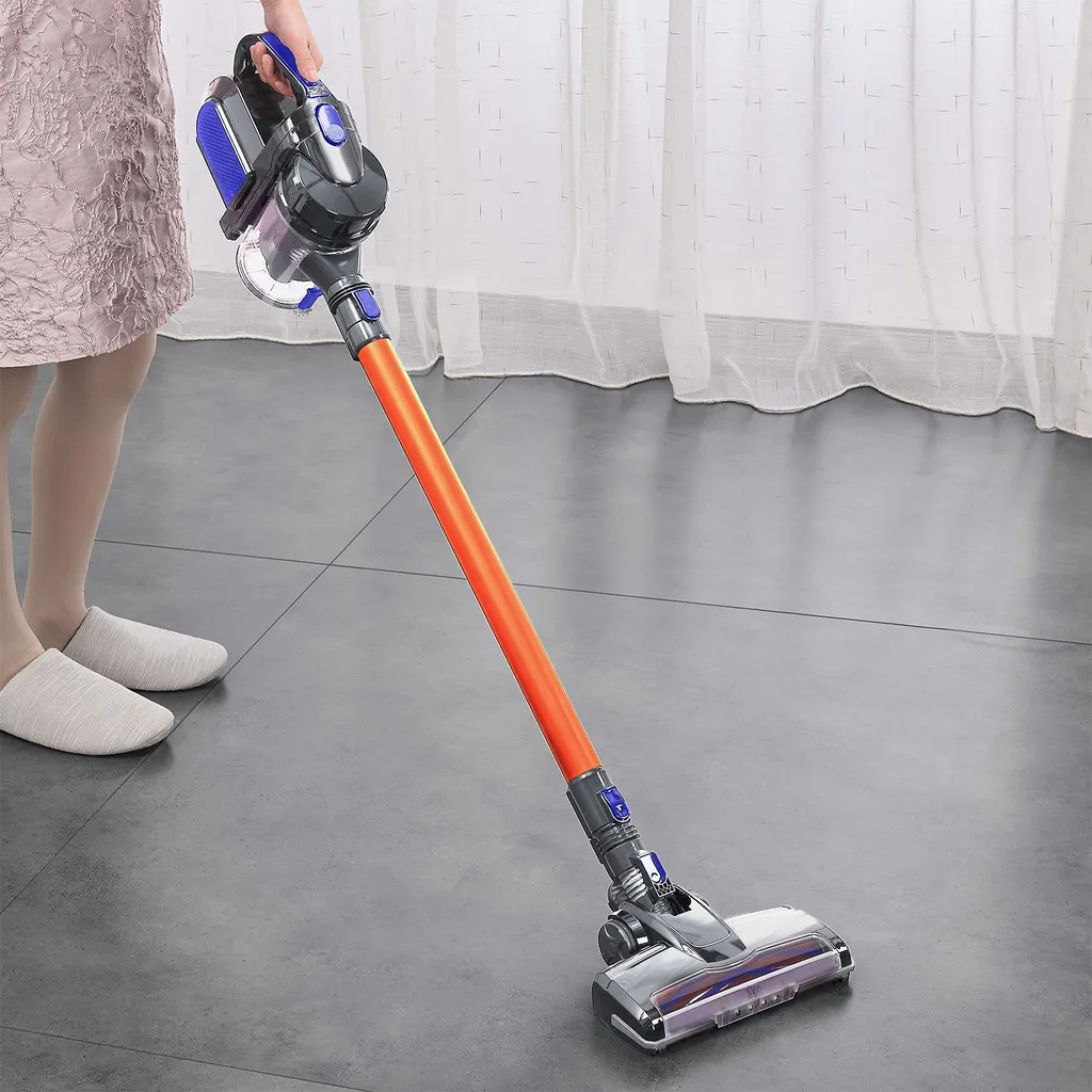 Der praktische 2-in-1 Akku Staubsauger VAC100 Pro (blau) mit Wandhalterung, Ladestation und LED Bodendüse ist das optimale Gerät für den Hausputz. Der kabellose und beutellose Sauger lässt sich sowohl als Handstaubsauger als auch als Stielstaubsauger verwenden. Als Bodensauger mit Stiel befreien Sie gängige Bodenbeläge wie Teppich, Fliesen, Parkett oder Laminat mühelos von Staub, Krümeln oder Haaren. Das Handgerät eignet sich auch gut, um Tische, Tastaturen oder die Sitze im Auto abzusaugen. So wird die Reinigung von Haus, Wohnung, Auto oder Wohnmobil zum Kinderspiel.