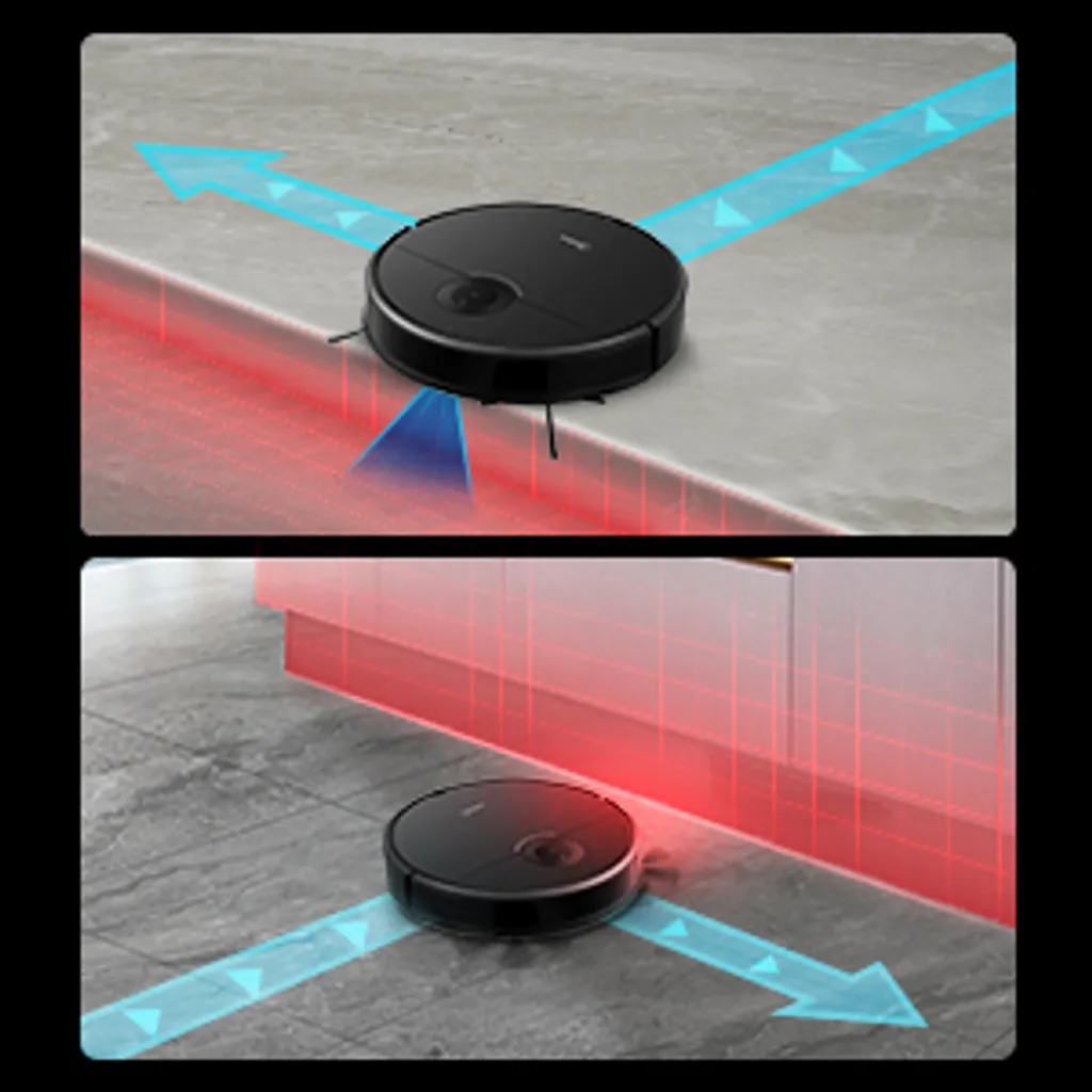 - 【Mehrere Sensoren】Absturzsensoren: Modernste Fallschutzsensoren an der Unterseite verhindern, dass der Saugroboter über Treppen oder Stufen fällt. Antikollisionssensoren: Infrarotsensoren und eine sensorüberwachte Stoßstange erkennen Hindernisse und schützen nicht nur Ihren Saugroboter, sondern auch Ihre Möbel. Außerdem sorgt dies für eine gründliche Reinigung in den Ecken.