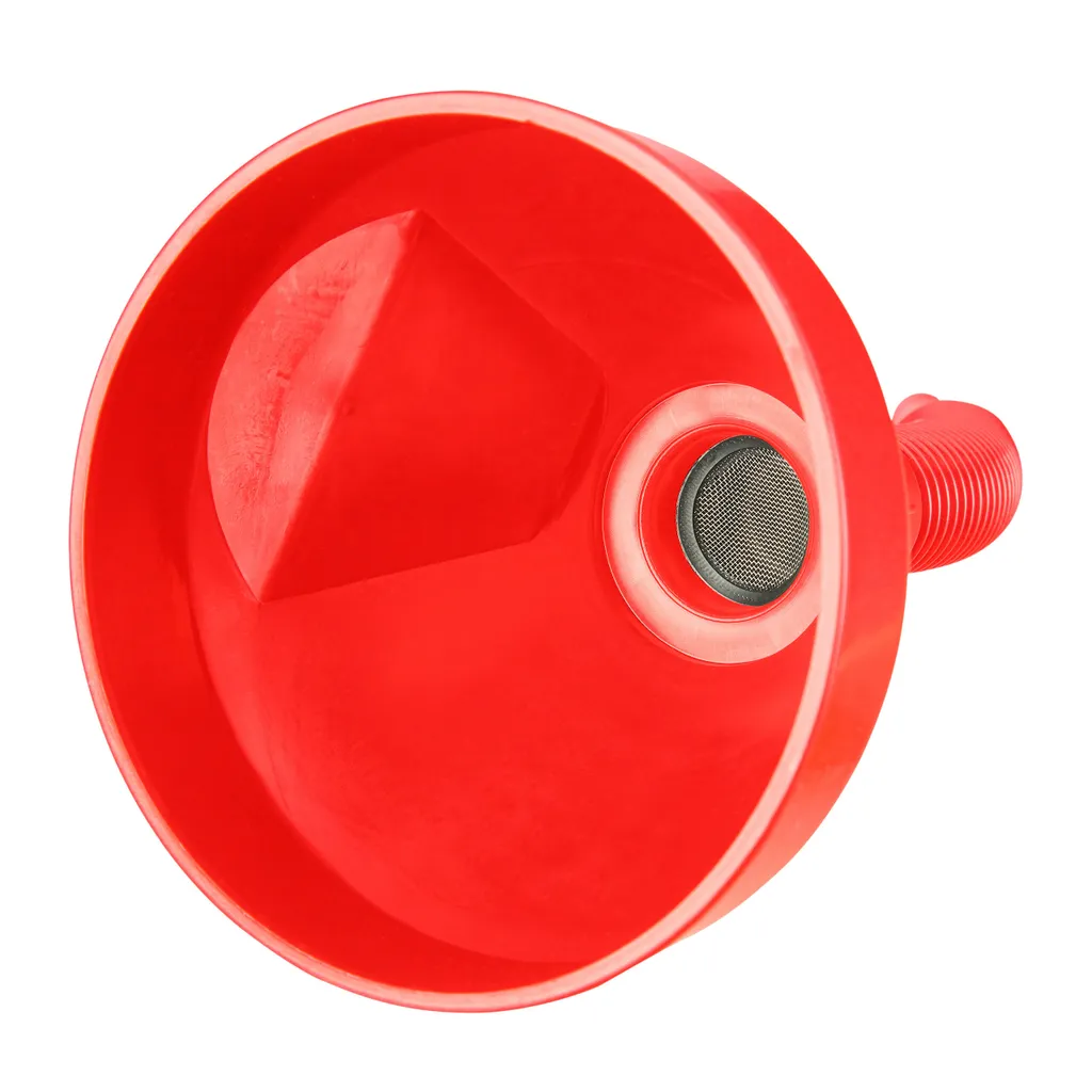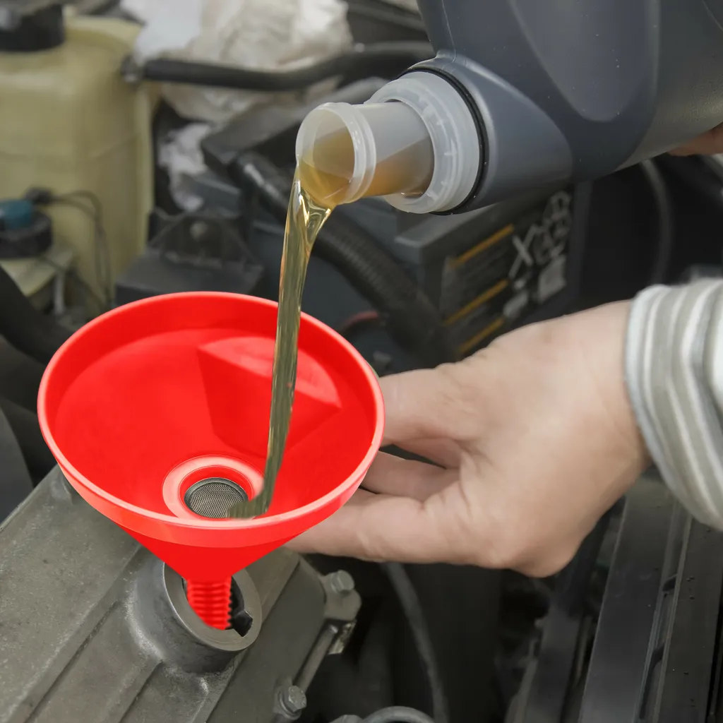 Für den Ölwechsel ist das Trichterset ideal. Öl, Kühlwasser und Scheibenwischerflüssigkeit können Sie mit dem Kfz-Trichter ganz entspannt einfüllen. Das Sieb hält schädliche Partikel ab und lässt sich bei Bedarf entnehmen. Der Schlauch ist beweglich und abnehmbar. Aber nicht nur in der Garage ist der Trichtersatz praktisch. Auch im Haushalt sind die Universaltrichter auf vielfältige Weise nützlich. Sie lassen sich platzsparend ineinander stapeln, können dank der Ösen aber auch aufgehängt werden.