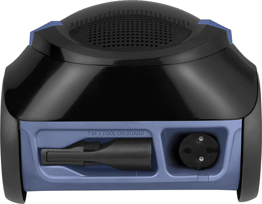 einfach zu bedienender Staubsauger mit Beutel, für gute Reinigungslösungen in Wohnräumen auf kleinen Oberflächen, hohe Saugleistung auf hartem Boden, ultra-kompaktes Design und zwei Stellpositionen für problemlose Lagerung und ultimativen Komfort, niedriger Stromverbrauch, 2,5 l Kapazität des Staubbeutels, 2-in-1 Fugendüse immer zur Hand, leicht zugänglich an Bord für das perfekte Finish in schwer zugänglichen Bereichen, Easy-carry Transport Tragegriff und leichtes Design für mühelose Bedienung und Führung, Länge Netzkabel 5 m, Aktionsradius 7,65 m, vVerbessertes ergonomisches Design mit zwei extra-großen Rädern für verbesserte Fluidität und Bewegungsfreiheit, Leistung 750 W