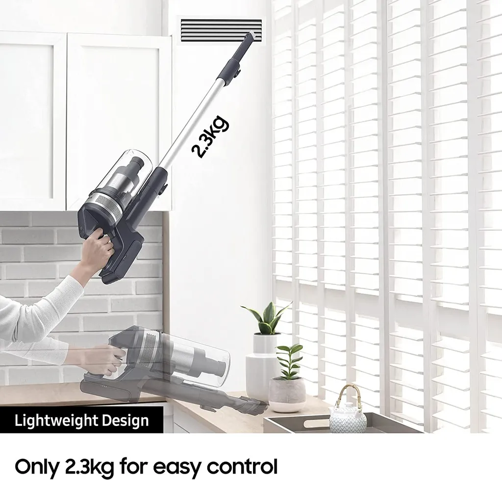 Leistungsstarke, kabellose Reinigung mit einer Saugleistung von bis zu 150W Der effi ziente Digital Inverter Motor sorgt für eine starke Saugkraft an der Bürste und seine ultraschallverschweißten Air Foil Blades erzeugen einen speziellen Luftstrom. Mit einer starken Eingangsleistung von bis zu 410 W und einer hohen Energieeffi zienz erzeugt er so eine Saugleistung von bis zu 150 W – für eine gründliche und effi ziente Reinigung deiner Hart- und Teppichböden. Mehrstufiges Filterungssystem gegen Staub und Allergene Durch das mehrstufi ge Filterungssystem wird die eingesaugte Luft gefi ltert. Zunächst trennen der Hauptzyklon und ein Netzfi lter aus Metall den groben Staub aus der eingesaugten Luft. Anschließend fi ltern der Jet-Cyclone mit seinen 9 Zyklonen, der Mikrofi lter und der Feinstaubfi lter feinen und Mikrostaub aus dem Luftstrom. Somit werden bis zu 99.999% des Mikrostaubs mit einem Durchmesser von 0,3-10μm aus der eingesaugten Luft gefi ltert. Also auch nicht sichtbare Staubpartikel, Pollen und Schimmel. Ausdauernder und wechselbarer 21.6 Volt Akku Der effi ziente 1.800 mAh-Akku hat genug Energie für bis zu 40 Minuten Saugkraft im Dauerbetrieb. Du kannst den Akku auch ganz einfach wechseln um die Saugdauer zu verdoppeln. Gründliche Reinigung von Hart- und Teppichböden mit der Jet Fit Bürste Die Jet Fit Bürste kann selbst feine Staubpartikel aus Teppichen und von Hartböden einsaugen. Mit dem 180 Grad Drehgelenk kannst Du mühelos auch Teppiche und Hartböden bis in die letzte Ecke reinigen. Zur einfachen Reinigung der Bürstenrolle löst Du sie mit nur einem Klick.