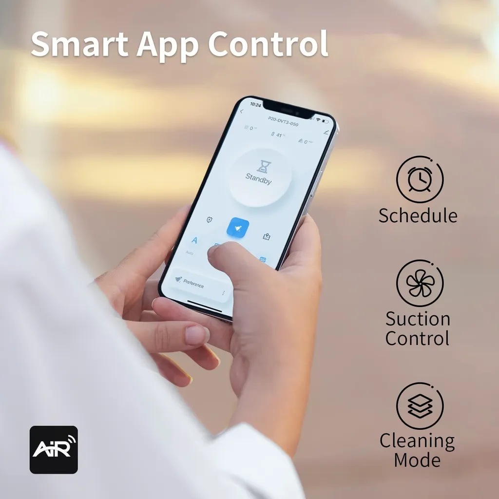 - [ Smart App Steuerung ] Nur 3 Schritte, um sich mit der APP zu verbinden. Mit der AIRROBO App können Sie ganz einfach die Reinigungszeitpläne einrichten, die Reinigungsmodi ändern, die Saugstufe und die Reinigungsrichtung steuern. Ausgestattet mit einer separaten Fernbedienung können Sie ihn auch ohne Netzwerk verwenden.