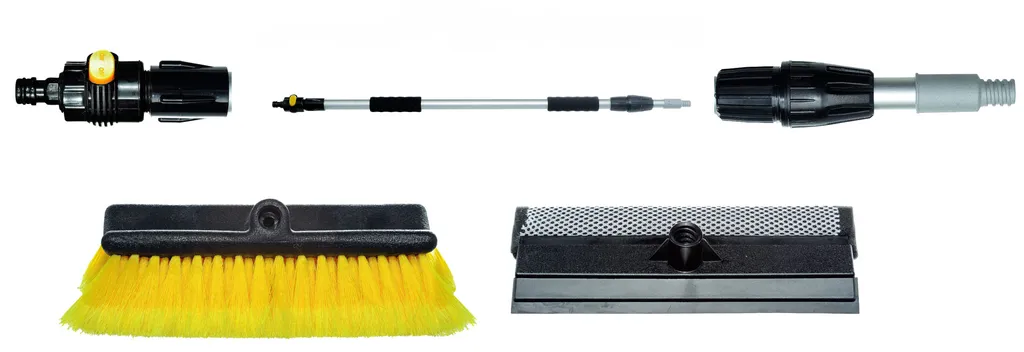 - zweifach ausziehbarem Aluminium Stiel (90-175cm) mit Wasserdurchlauf (Metallgewinde und verstärktem An/Aus Wasserschalter)